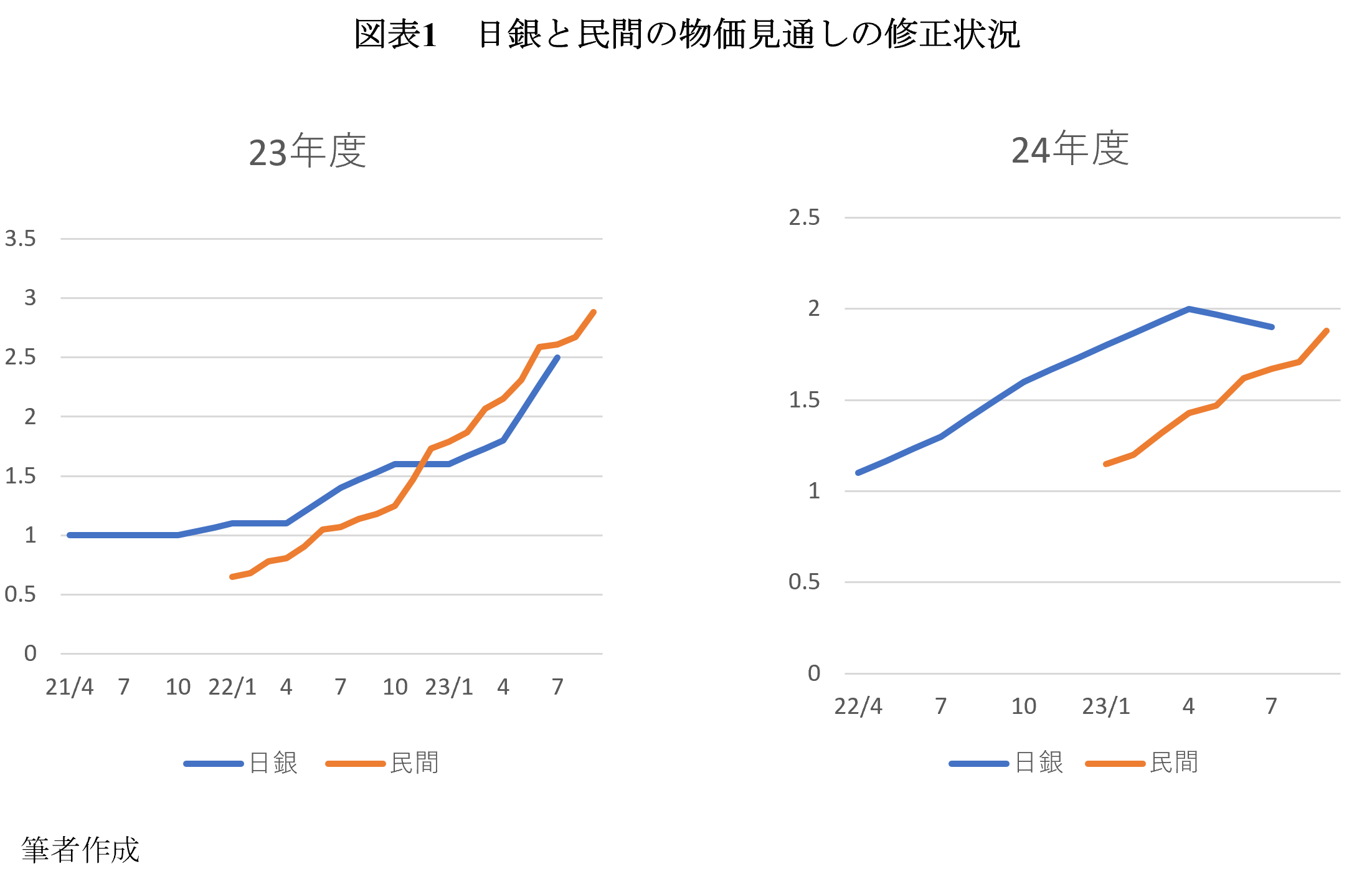 [7] もちろん、25年度のインフレ率は1%台になるという見通しを示すことはできるが、22年度から24年度まで3年連続で見通しを実績が上回りそうな状況で、確たる根拠なく「2年先は1%台に戻る」と主張するだけでは十分に説得的とは言えまい。